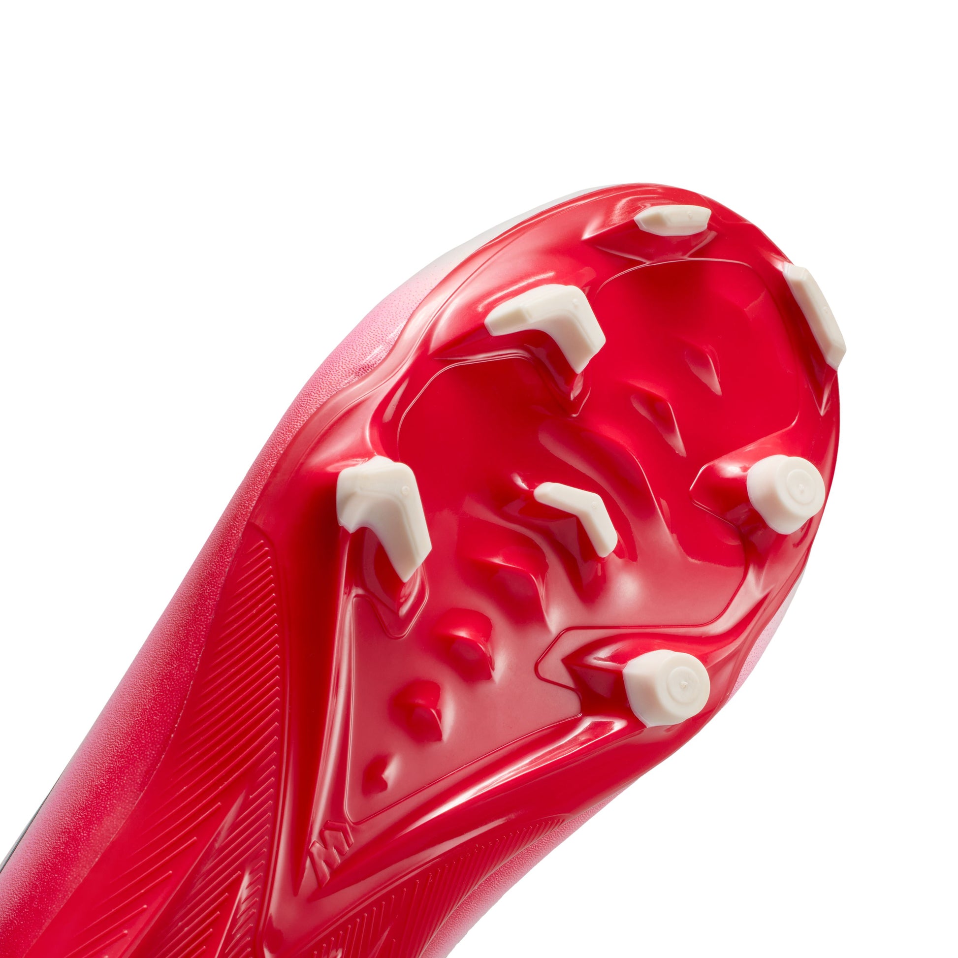Le motif de traction ondulé est constitué d'une série de crampons en cascade, optimisant ainsi la surface de l'unité Air Zoom tout en offrant une adhérence optimale. Le crampon le plus grand est de la même hauteur que nos crampons centraux traditionnels, préservant ainsi la traction. Nous avons associé ce motif ondulé à des crampons à chevrons et à lames évolués pour faciliter les freinages lors des virages.