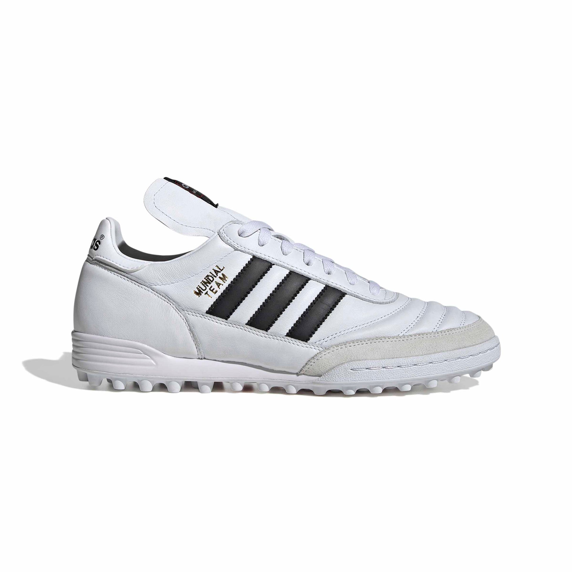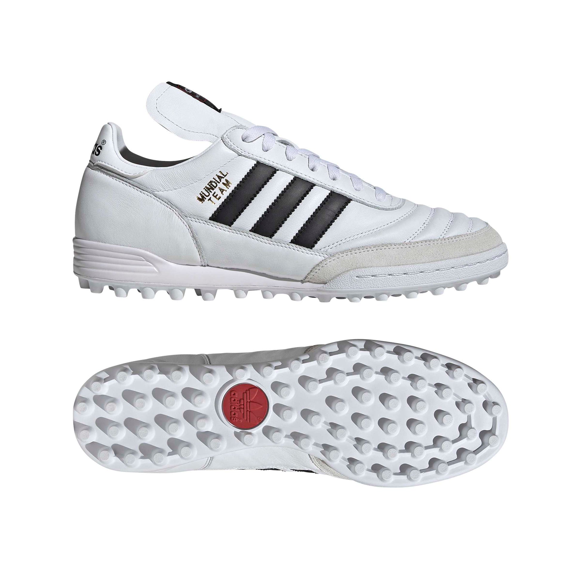 Créée pour offrir un toucher de balle exceptionnel, la Mundial continue de dominer les terrains du monde entier. La tige en cuir et suède de cette chaussure de football t'assure contrôle et confort immédiats. La semelle extérieure en caoutchouc améliore la stabilité sur terrain turf et dur, et la semelle intermédiaire en mousse amortit chaque action.