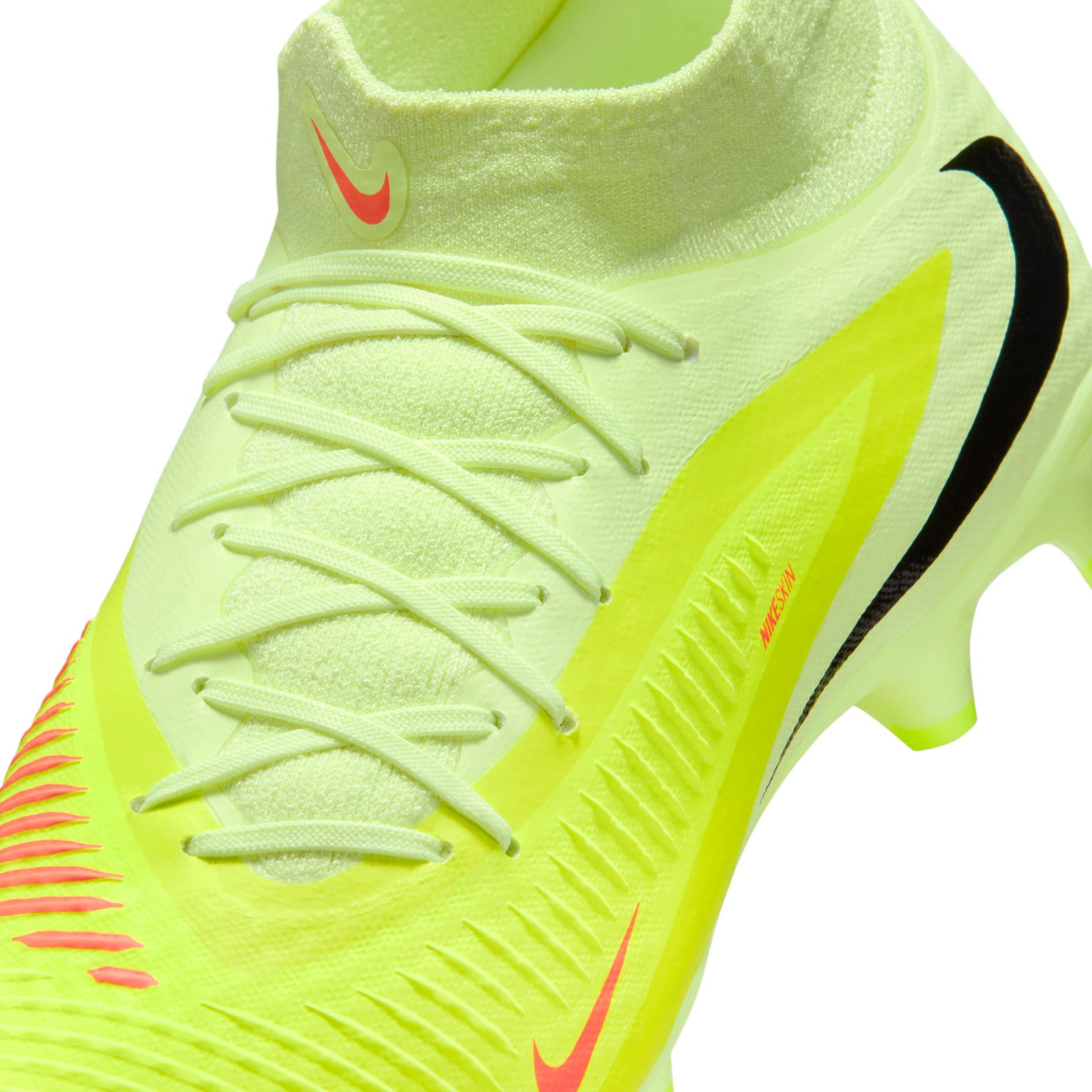 La zone de toucher NikeSkin élargie, renforcée par un mesh technique, rapproche votre pied du ballon. Vous bénéficiez ainsi d'un meilleur contrôle lors de vos dribbles et passes, même par temps sec ou humide.