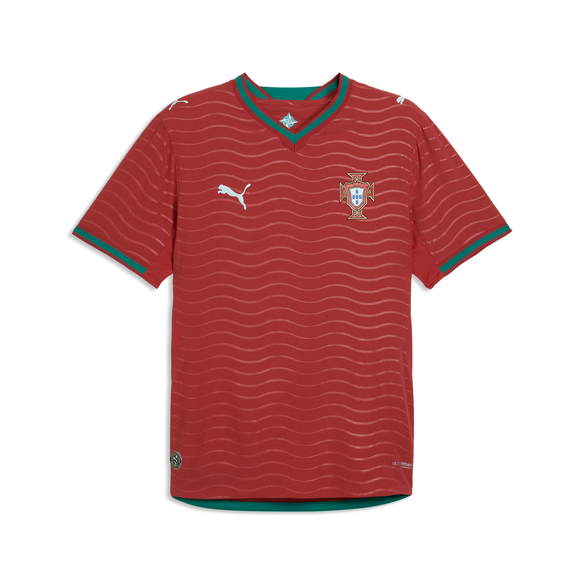 Le maillot domicile du Portugal incarne l'énergie de l'océan et l'intensité d'une équipe prête à briller sur la plus grande scène. Son emblématique base rouge est rehaussée d'un motif ondulé et de touches de vert, un clin d'œil aux racines maritimes du pays et à son esprit intrépide. Un design qui parle à celles et ceux qui sont nés pour explorer et vivent pour jouer, « por amor à camisola ». La version Authentic, conçue pour les matchs, est fabriquée en tissu ULTRAWEAVE de PUMA et offre une coupe athlétique pour des performances de haut niveau.