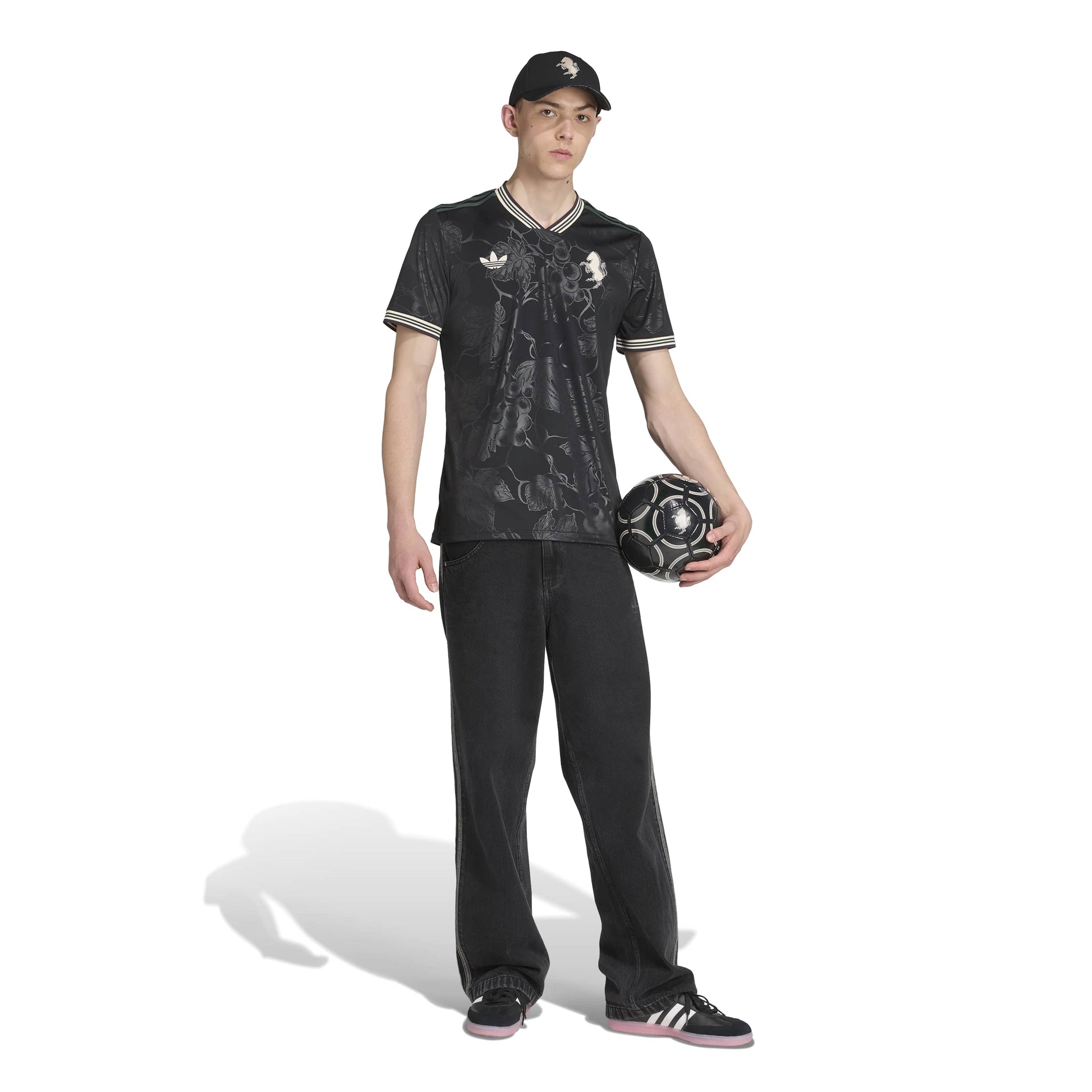 Raise a glass to your football heroes in a juniors' Juventus jersey that pays tribute to Piedmont's wine-making tradition. Standing out from black colours, an embroidered adidas Trefoil and classic club badge join subtle, vineyard-inspired graphics to produce an understated, elegant look. Created to keep fans comfortable and relaxed, this shirt features soft fabric and moisture-managing AEROREADY.