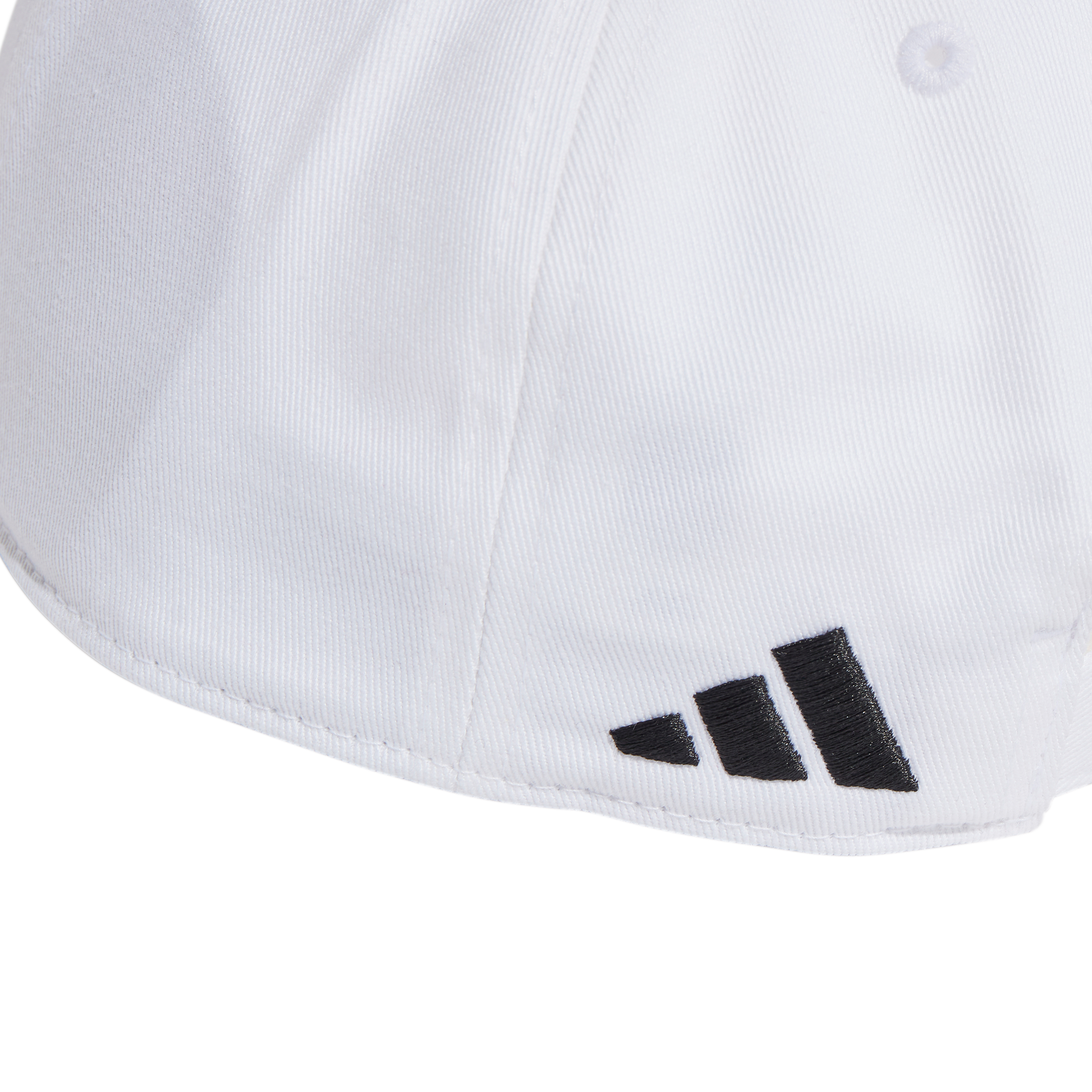 Express your Real Madrid pride from the shade of this classic adidas baseball cap. Made of soft cotton twill and boasting a curved brim, it's an essential for match day and beyond. The adjustable strap provides a custom fit. That woven team crest on the front leaves no doubt where your football loyalties lie.